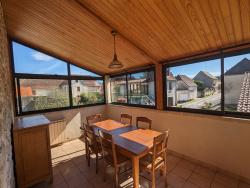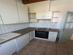Dans un petit village avec toutes les commodités, cette maison d'environ 112 m2, en pierre se compose d'un RDC d'environ 65 m2 (sol résine), un espace buanderie, cuisine d'été, un espace chaufferie, une partie cave en cailloux. Au premier étage se trouve une véranda d'environ 15m2, une pièce de vie avec insert, une cuisine fermée, une chambre, une salle d'eau et un WC séparé. Au deuxième deux chambres sous combles et un WC séparé avec lavabo. Ce bien dispose d'un double garage avec combles et un petit atelier. Chauffage central au fioul + insert bois. Climatisation installée en 2021.