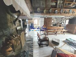 Au RDC : belle pièce à vivre avec cheminée, four à pain, cuisinière bois et cuisine américaine.