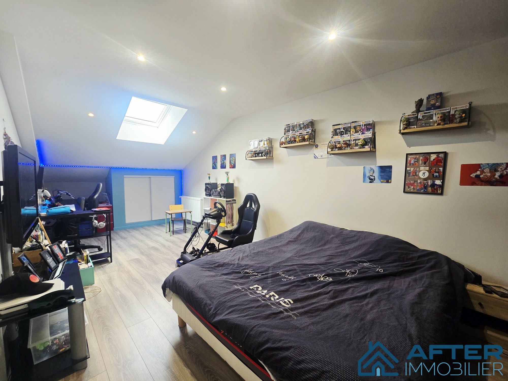 Maison d'habitation (environ 215m2) 3 chambres avec possibilité d'en créer d'autres Salon lumineux Cuisine équipée Salle de bains WC Climatisation réversible, cheminée Menuiserie récente PVC Triple vitrage