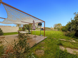Accès terrasse bois + jardin et potager clôturé