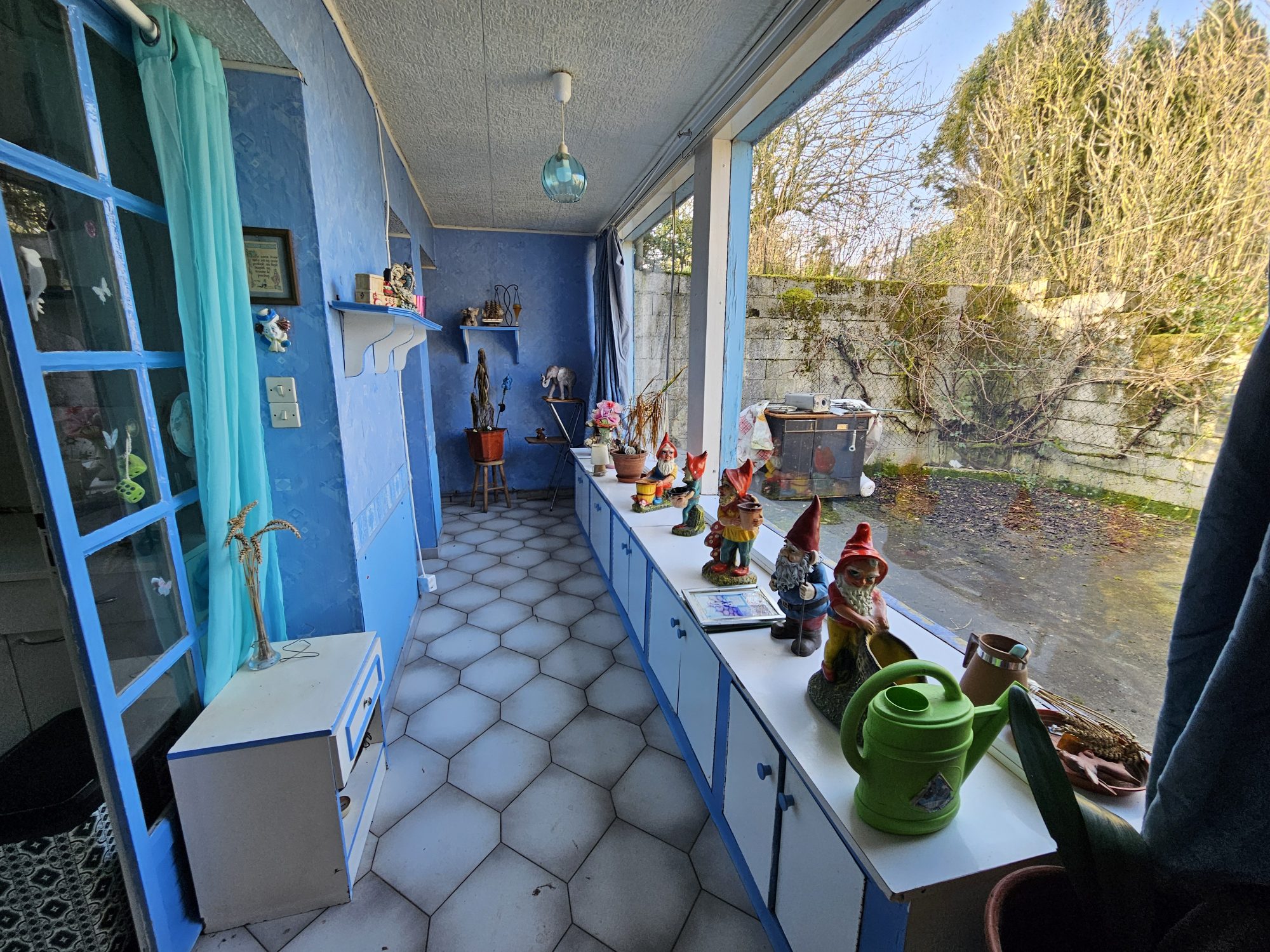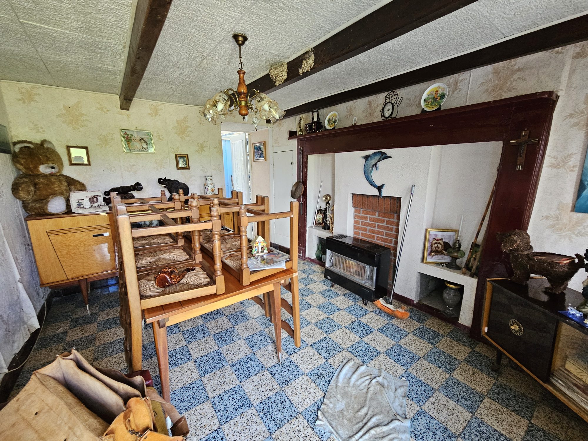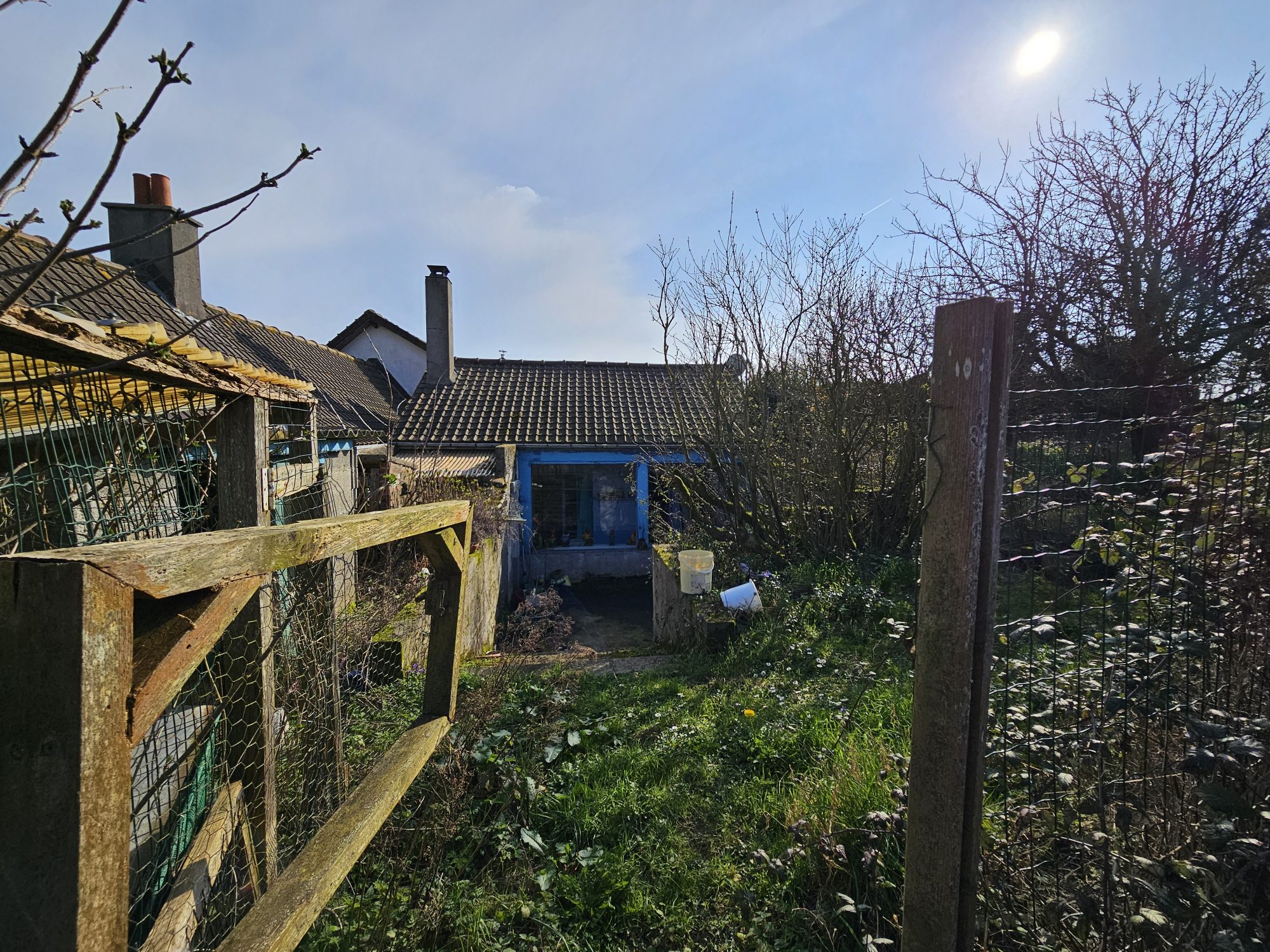 Les fenêtres sont en PVC double vitrage, la maison est chauffée avec un poêle à bois, l'assainissement est collectif. La maison sera libre mi-novembre et sera une toile blanche pour votre créativité.