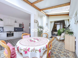 Dès l'entrée, le charme opère immédiatement. Cette maison des années 1930 a su préserver toute son authenticité avec de superbes carreaux de ciment en excellent état, des moulures d'origine, de belles hauteurs sous plafond et de magnifiques portes doubles vitrées à petits bois, typiques des maisons de cette époque. Le salon-séjour, baigné de lumière traversante, développe près de 35 m2 et offre un espace de vie chaleureux et élégant. Il est sublimé par un parquet massif en point de Hongrie, ainsi que par les manteaux de cheminée en marbre conservés, véritables signatures architecturales des années 30. La cuisine d'environ 15 m2, attenante à la salle à manger, s'intègre naturellement dans la continuité des espaces de réception. Dans le prolongement, le jardin permet de profiter d'un extérieur agréable, atout toujours recherché pour ce type de maison de ville. L'accès aux étages se fait par un escalier ancien en bois massif quart tournant, avec balustres tournés, parfaitement conservé et en harmonie avec le caractère de la maison. Au premier étage, deux belles chambres de 16 m2 et 17,70 m2 offrent de beaux volumes et une atmosphère chaleureuse. Les étages bénéficient d'un véritable parquet massif, apportant continuité, confort et authenticité à l'ensemble. Une salle de bain avec douche ainsi qu'un second WC complètent ce niveau. Le second étage accueille deux chambres supplémentaires de 12 m2 et 16 m2, dont l'une dispose d'une mezzanine. Une seconde salle de bain équipée d'une baignoire et d'une double vasque vient parfaire cet espace nuit, idéal pour une vie de famille. Côté prestations techniques, la maison dispose de menuiseries PVC double vitrage avec volets électriques, d'un chauffage au gaz, d'une toiture refaite en 2005 et d'un raccordement au tout-à-l'égout.Le DPE est classé D. Une maison familiale au cachet préservé, où les codes architecturaux des années 30 ont été respectés et mis en valeur, offrant chaleur, élégance et authenticité. Information sur les risques auxquels ce bien est exposé sont disponibles sur le site Géorisques: www.georisques.gouv.fr