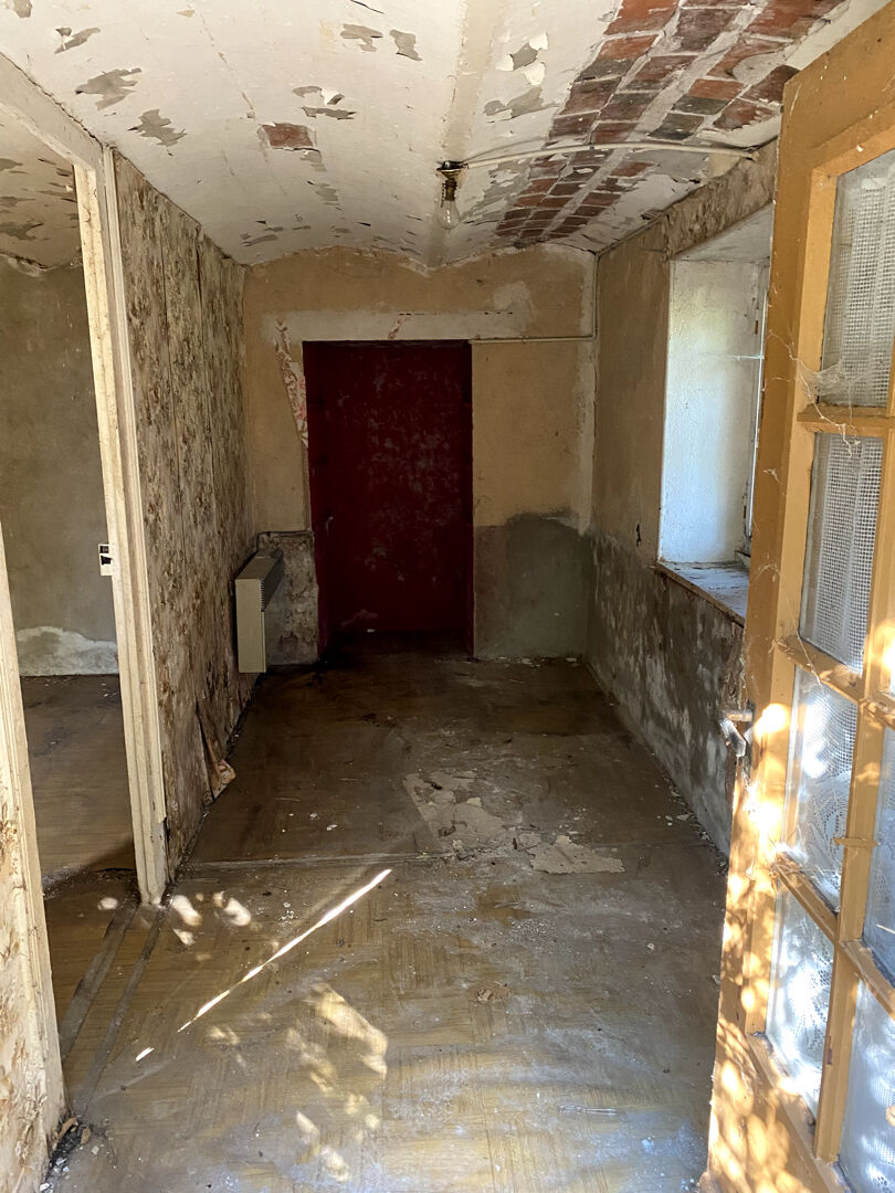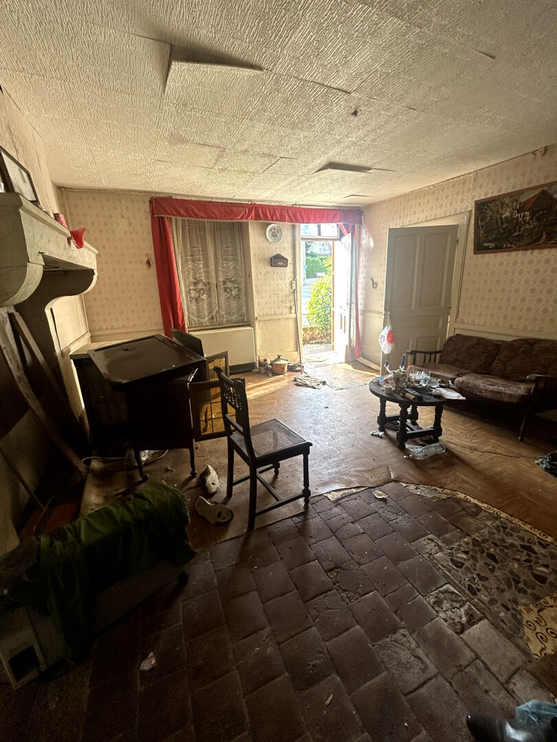 Maison de ville à rénover de plain pied, composée d'une entrée dans salon avec coin cuisine, deux chambres en enfilade coté rue, une pièce à usage de salle de bain avec wc à créer, une remise. Accès par la maison au jardinet de 20 m2 environ à l'arrière de la maison. Réfection de la toiture à prévoir.