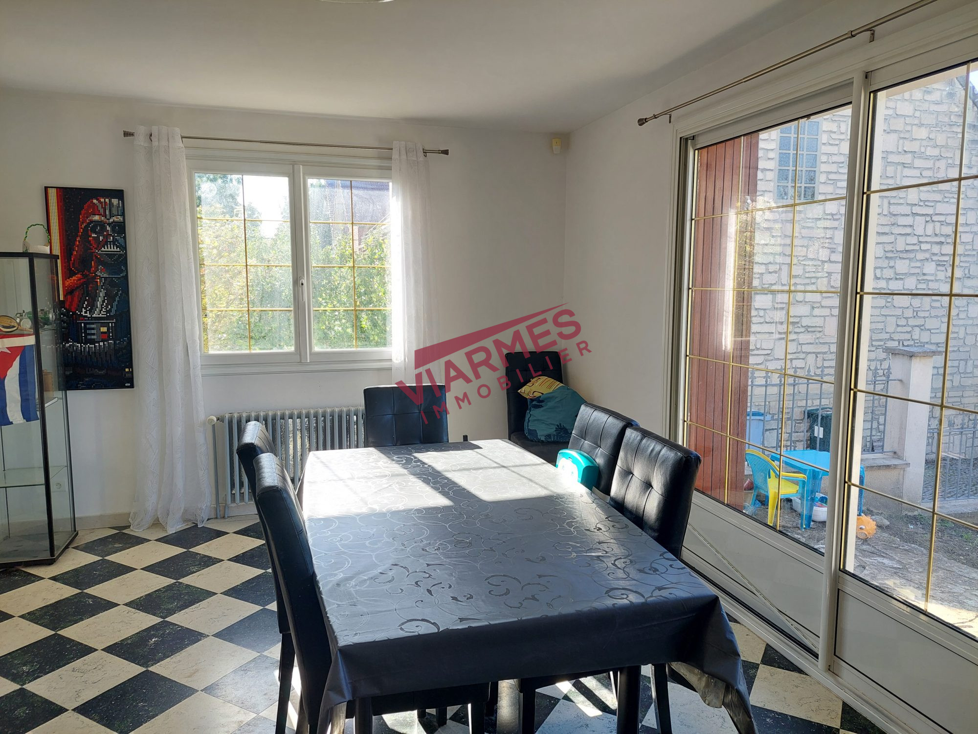 Centre-ville de Beaumont, maison de ville offrant, au rez-de-chaussée, entrée sur salon-salle à manger, cuisine aménagée, salle d'eau, WC, buanderie, à l'étage, palier, 2 chambres, bureau ou chambre palière. Grenier aménageable, cave, garage à motos, cour privative d'environ 50 m².