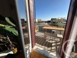 Elle dispose d'un séjour avec cuisine semi ouverte donnant sur une cour d'un coté et d'un beau balcon plein sud de l'autre. L'étage dispose de deux chambres ainsi qu'une salle d'eau avec toilette, le rez de jardin dispose d'une salle de bains / d'eau avec toilette séparé ainsi qu'une belle chambre donnant sur une cour.