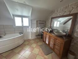 Un palier avec accès aux combles pour stockage. Un couloir desservant deux belles chambres. Une salle de bain avec baignoire et douche. Un WC indépendant.