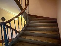 L'escalier en bois nous accompagne du rez-de-chaussée jusqu'au dernier niveau, distribuant les espaces de nuit avec douceur. Aux premier et deuxième étage, on trouve au total quatre chambres, chacune avec sa propre salle d'eau, une configuration peu courante, qui assure confort et autonomie à tous.