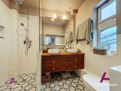Dès l'entrée, le ton est donné : beaux volumes, lumière traversante et matériaux nobles. Le séjour de 32 m², sublimé par une cheminée fonctionnelle, invite à la détente dans une atmosphère chaleureuse. La cuisine semi-ouverte et entièrement équipée est un véritable puit de lumière grâce à une belle verrière atelier.