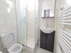 A mi-palier une salle de douche avec WC.