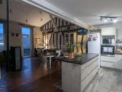 Le premier étage de la maison est le siège de la vaste pièce de vie exposée au sud, très lumineuse avec sa cuisine ouverte neuve (réalisée par un artisan cuisiniste et équipée d'électroménagers allemands haut de gamme). Colombages, charme, tout est réalisé avec soin et avec le meilleur goût. Le confort n'est pas oublié : Double vitrage, climatisation réversible, poêle à pellet, ballon thermodynamique...