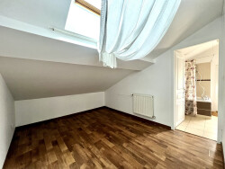 Elle se compose au rez-de-chaussée d'un beau séjour avec accès terrasse, une grande cuisine aménagée et équipée, une chambre de plus de 13m2 et un wc. A l'étage, deux chambres mansardées et une salle de bains.