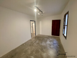 La maison est composée au rez-de-chaussée d'une cuisine d'environ 27 m2, d'un séjour- salle à manger de 18 m2 ainsi que d'une petite salle d'eau récemments rénovés. Aussi au rez-de-chaussée, se trouve un garage de 45 m2 avec accès indépendant et qui dispose de deux niveaux de 45 m2 se trouvant au dessus de celui-ci pouvant acceullir un appartement indépendant ou agrandir la maison. Au premier étage se trouvent une pièce de 15 m2 donnant accès à une chambre de 13,5 m2 et une deuxième chambre de 19 m2. Finalement, au deuxième étage le bien dispose d'une troisième chambre d'environ 15 m2 ainsi qu'une grande pièce de 35m2. Une spacieuse cave au sous-sol complète le bien. Des travaux de rénovation ont été débutés mais la toiture reste à restaurer ainsi qu'une partie du second oeuvre.