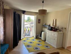 Au premier étage d'une cuisine ouverte, d'un salon /SAM avec une cheminée/insert qui donne sur un balcon/ terrasse avec une belle vue .