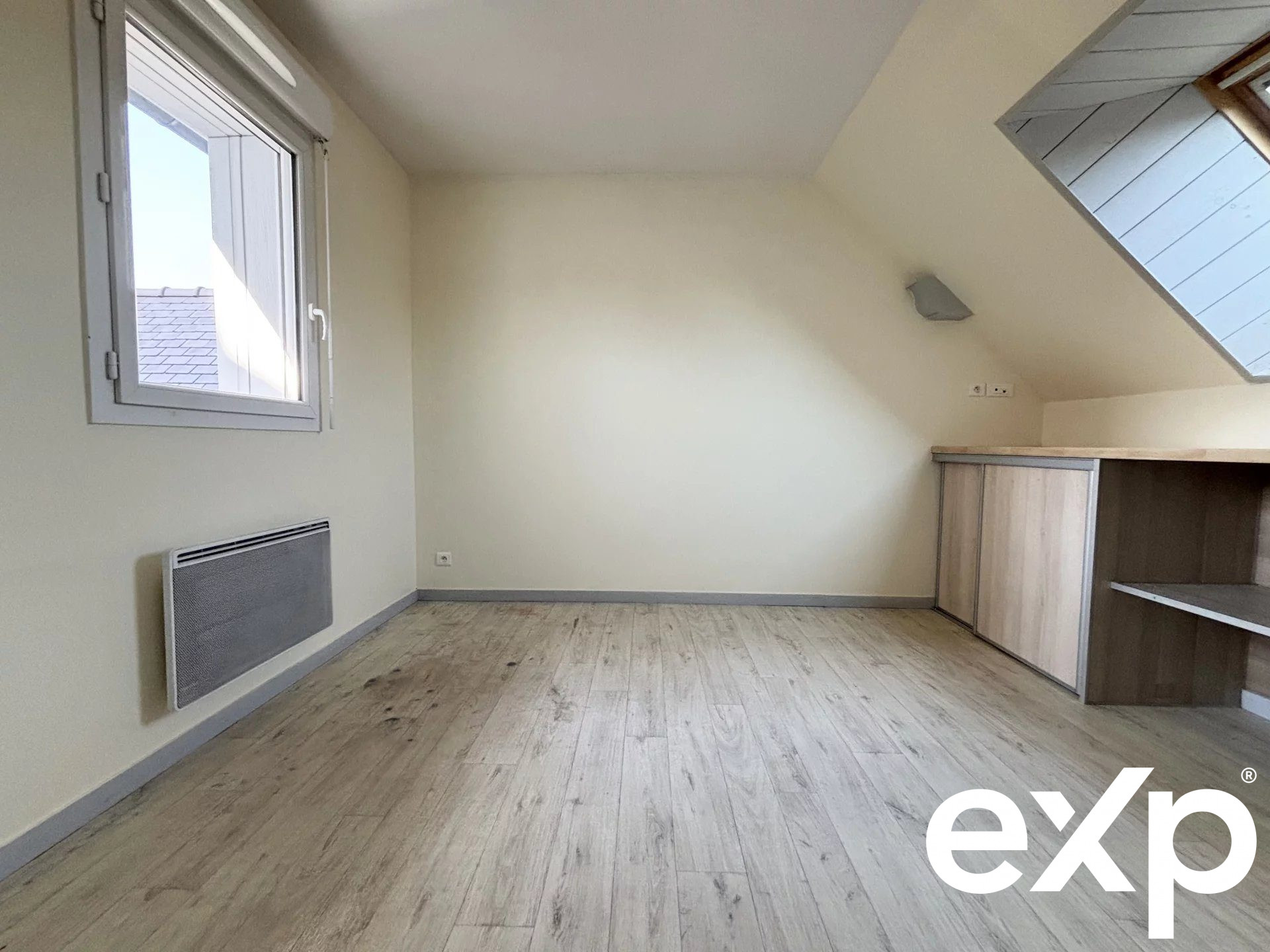 L'étage accueille deux belles chambres lumineuses sur parquet, toutes deux équipées de grands placards intégrés.