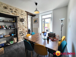 EN EXCLUSIVITÉ: Maison de ville en hyper centre de Saint-Junien bénéficiant d'une agréable terrasse. Ce bien rénové entre 2011 et 2016 offre un cadre de vie atypique avec beaucoup de charme. Au rez de chaussée se trouvent une vaste entrée, un WC, une cuisine dinatoire aménagée et équipée ouverte sur une terrasse, un cellier, une pièce de vie. Au premier étage: une chambre, une salle d'eau, un WC, un espace buanderie/lingerie. Au second étage: une chambre avec salle de bains et WC (sanibroyeur), une chambre avec salle d'eau et WC. Au troisième étage: une chambre, une belle pièce aménagée (présence de la chaudière) avec mezzanine. Grenier. Double vitrage partout, chauffage gaz de ville (CHAUDIÈRE NEUVE), tout à l'égout, murs isolés, électricité refaite. Couverture démoussée en 2022 Absence de garage attenant mais POSSIBILITÉ D'EN ACQUÉRIR UN à proximité immédiate. Tous services, écoles, commerces accessibles à pieds