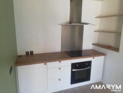 Le séjour spacieux de 46 m² est le coeur battant de cette demeure. Imaginez des soirées conviviales en famille ou entre amis, autour d'un feu de cheminée (optionnelle), dans un espace où les rires résonnent et les souvenirs s'égrènent. La cuisine ouverte, élégante et moderne, s'intègre parfaitement à cet espace de vie, créant une ambiance à la fois conviviale et raffinée.