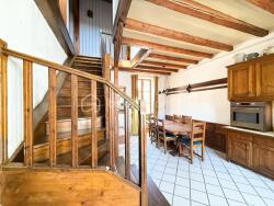 Maison en pierre, charme authentique de l'ancien avec sa poutraison donnant du volume et de la hauteur,