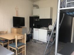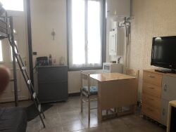 Un studio en rez-de-chaussée de 18 m2 et sa salle de bain.