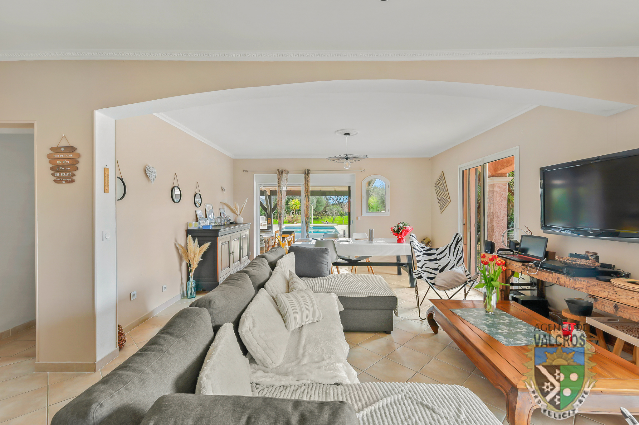 Profitez de la terrasse ensoleillée et du jardin bien entretenu pour des moments de détente en plein air. La piscine privée est l'endroit idéal pour se rafraîchir pendant les chaudes journées d'été. Un stationnement intérieur et deux places de parking extérieures sont également disponibles pour votre commodité.