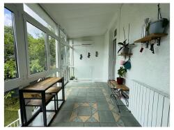 Dès l'entrée, un vaste hall avec placard dessert un salon-séjour lumineux de plus de 30 m². La cuisine indépendante, entièrement équipée, s'ouvre sur une agréable véranda avec WC séparés, offrant une vue dégagée sur le jardin.