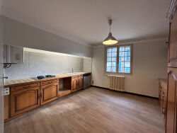 Habitation de ville rénovée située à proximité immédiate de la Cité, développant 110 m² sur deux niveaux. Le rez-de-chaussée comprend une entrée de bonne dimension permettant l'accès intérieur au garage carrelé, doté d'un espace buanderie. Une cuisine indépendante équipée avec cellier accompagne un séjour de 26,50 m² regroupant salon et salle à manger. Un WC séparé et un rangement sous escalier complètent cet espace. L'étage est organisé autour d'un couloir avec placards menant à quatre chambres, dont une avec ouverture sur une terrasse. Ce niveau inclut également une salle de bains et un WC indépendant. Chauffage central gaz de ville et menuiseries équipées de survitrage.