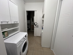 Bourg de Château Thébaud - Maison T3 meublée de 86m² - Elle se compose d'une entrée avec placard, d'un coin buanderie avec machine à laver, d'une salle d'eau avec WC, d'une pièce donnant sur cour. A l'étage : une pièce principale avec cuisine aménagée et équipée (four, plaques de cuisson, hotte, réfrigérateur et lave-vaisselle), deux chambres avec placards, une salle d'eau et un WC. Cour et Garage. Clim réversible. Libre le 01/04/2026. Loyer : 850.00 + 40.00 de provision pour charges (entretien de la pompe de relavage et de la clim)