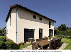 A l'extérieur une terrasse avec pergola bioclimatique, belle piscine avec solarium orienté ouest. Côté est, une 2eme terrasse et jardin.