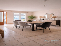 Le séjour-salon est lumineux et spacieux et ouvert sur le jardin, la cuisine est ouverte sur la pièce de vie