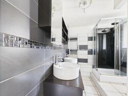 - La première habitation, d'environ 107 m², offre un séjour spacieux avec une cuisine équipée, trois chambres confortables, une grande salle de douche et des WC séparés.
