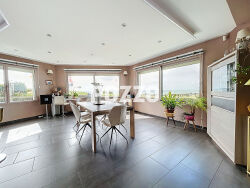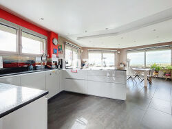 POZZO IMMOBILIER vous propose dans une résidence prestigieuse et paisible, une maison d'architecte (2001) avec une vue exceptionnelle sur les Iles Chausey, le Golf de Granville, comprenant : - En rez de jardin, une piscine intérieure, nage à contre courant dans un local de 76m² climatisé , régulation température et hygrométrie , WC. - Au-rez-de-chaussée : une entrée avec placards, wc avec lave-mains, un salon avec poêle à bois , une cuisine aménagée et équipée ouverte sur une salle à manger, une arrière cuisine avec chaufferie. - En demi-niveau : une chambre avec dressing, un bureau, une salle de bains et wc. - Au premier étage : une chambre avec une salle d'eau privative, quatre chambres, une salle de bains avec wc, un dressing. Un sous-sol avec garage et atelier, une cave à vin climatisée. Le tout sur un terrain clos et arboré.