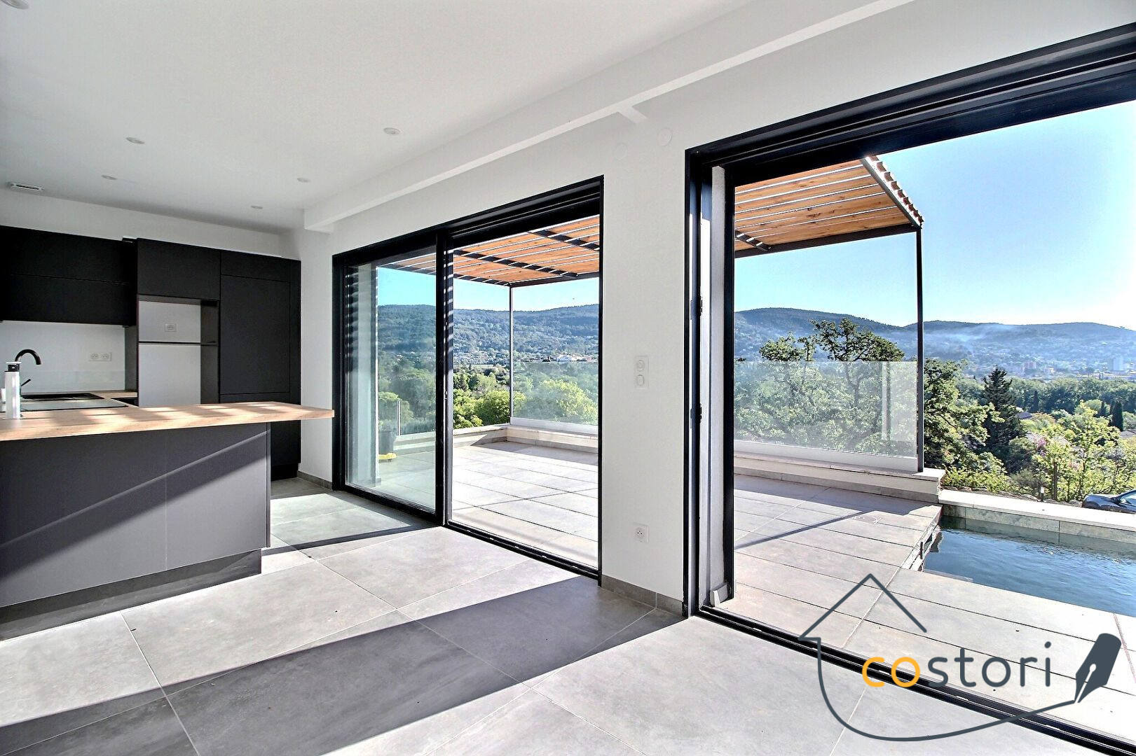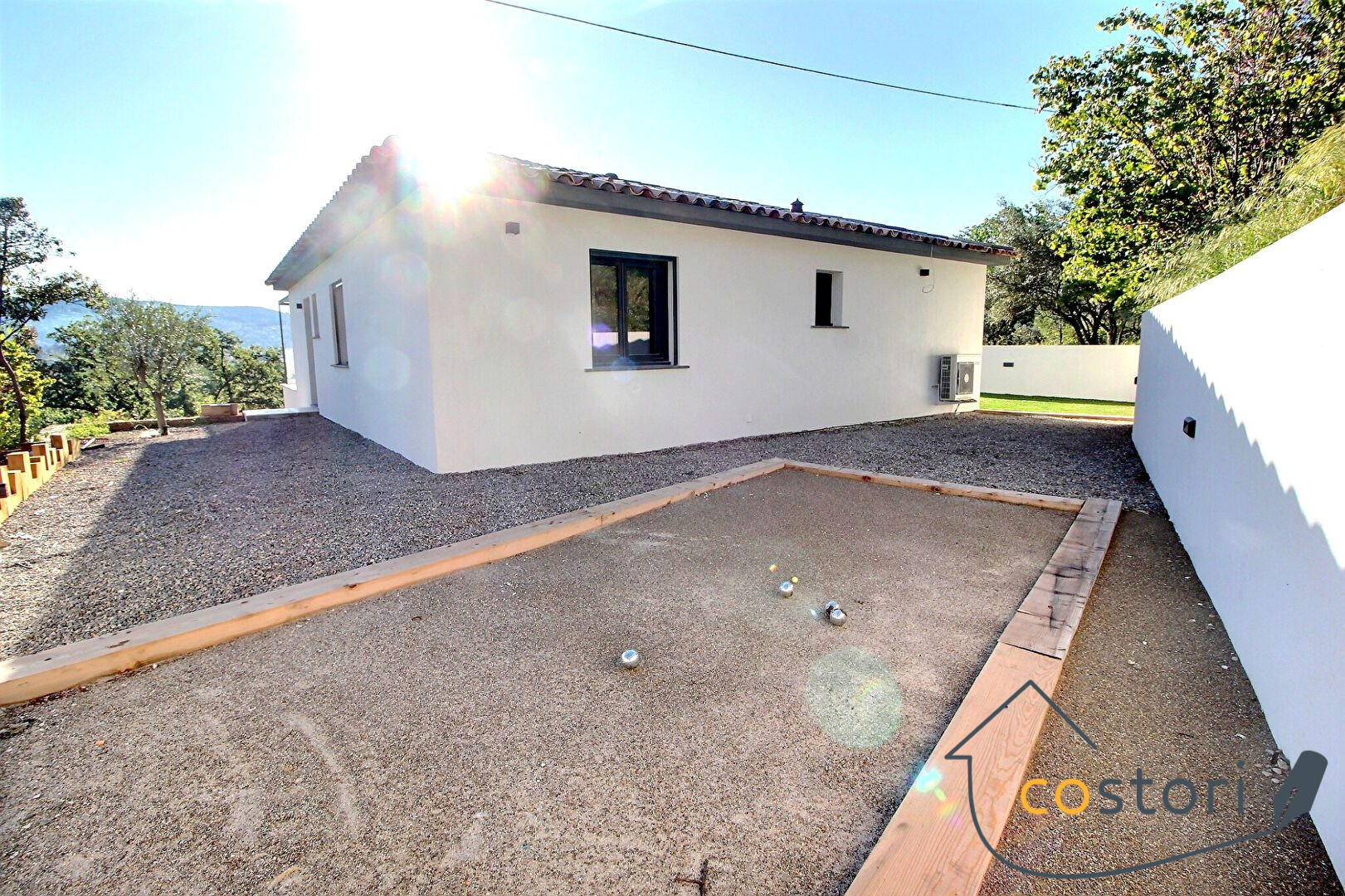 Elle se compose au rez-de-chaussée d'un séjour lumineux, d'une cuisine indépendante équipée, d'un WC, d'une arrière-cuisine et d'une chambre avec salle d'eau privative et terrasse, idéale pour profiter de la vue sur les collines.