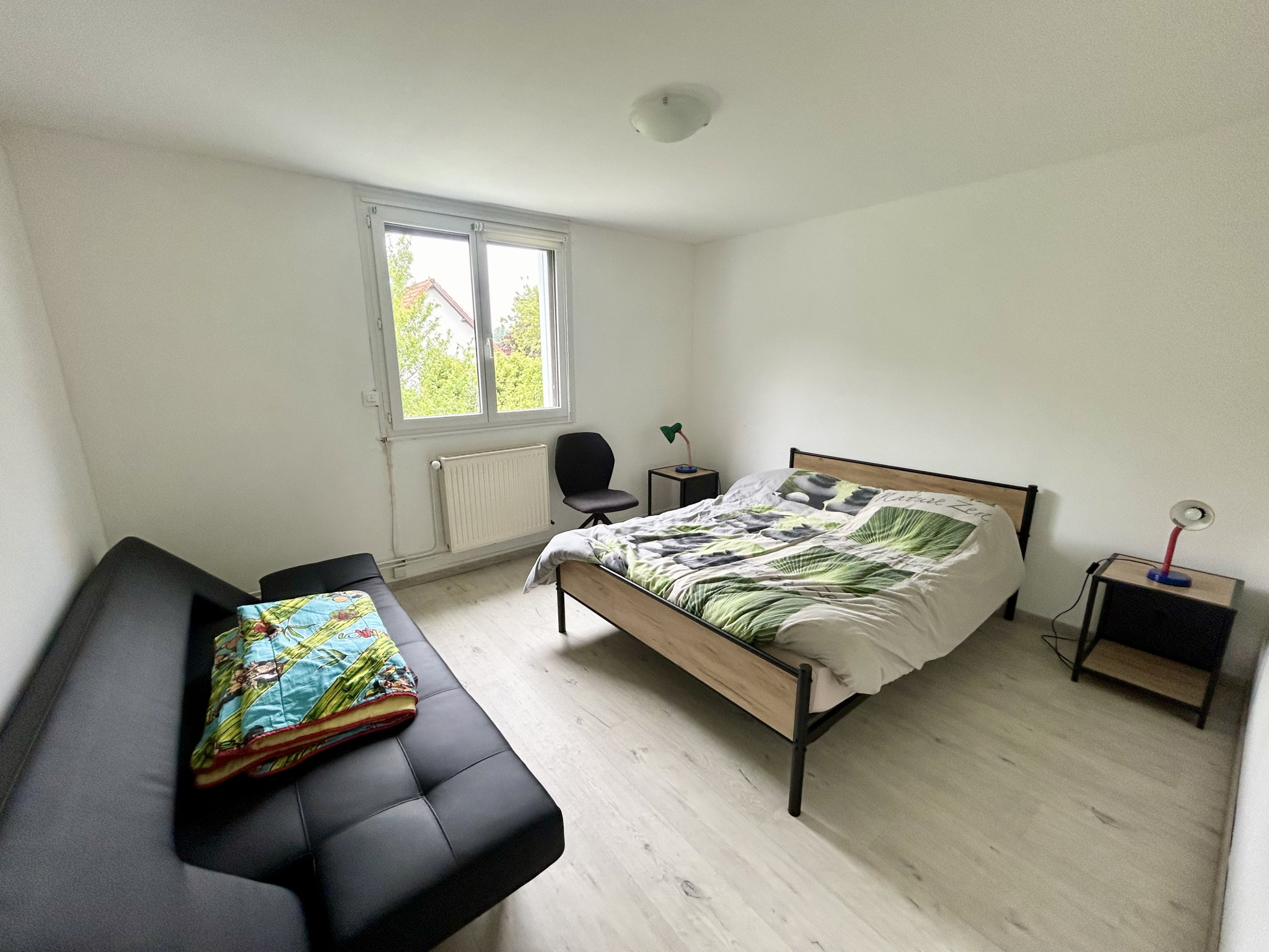Située dans une rue très peu passante : calme et soleil, belle luminosité.