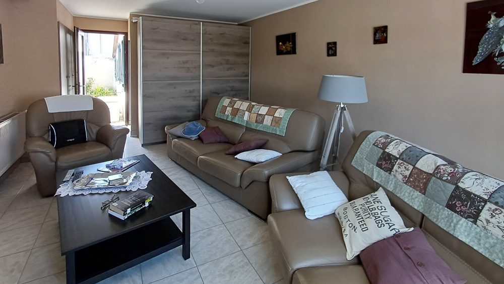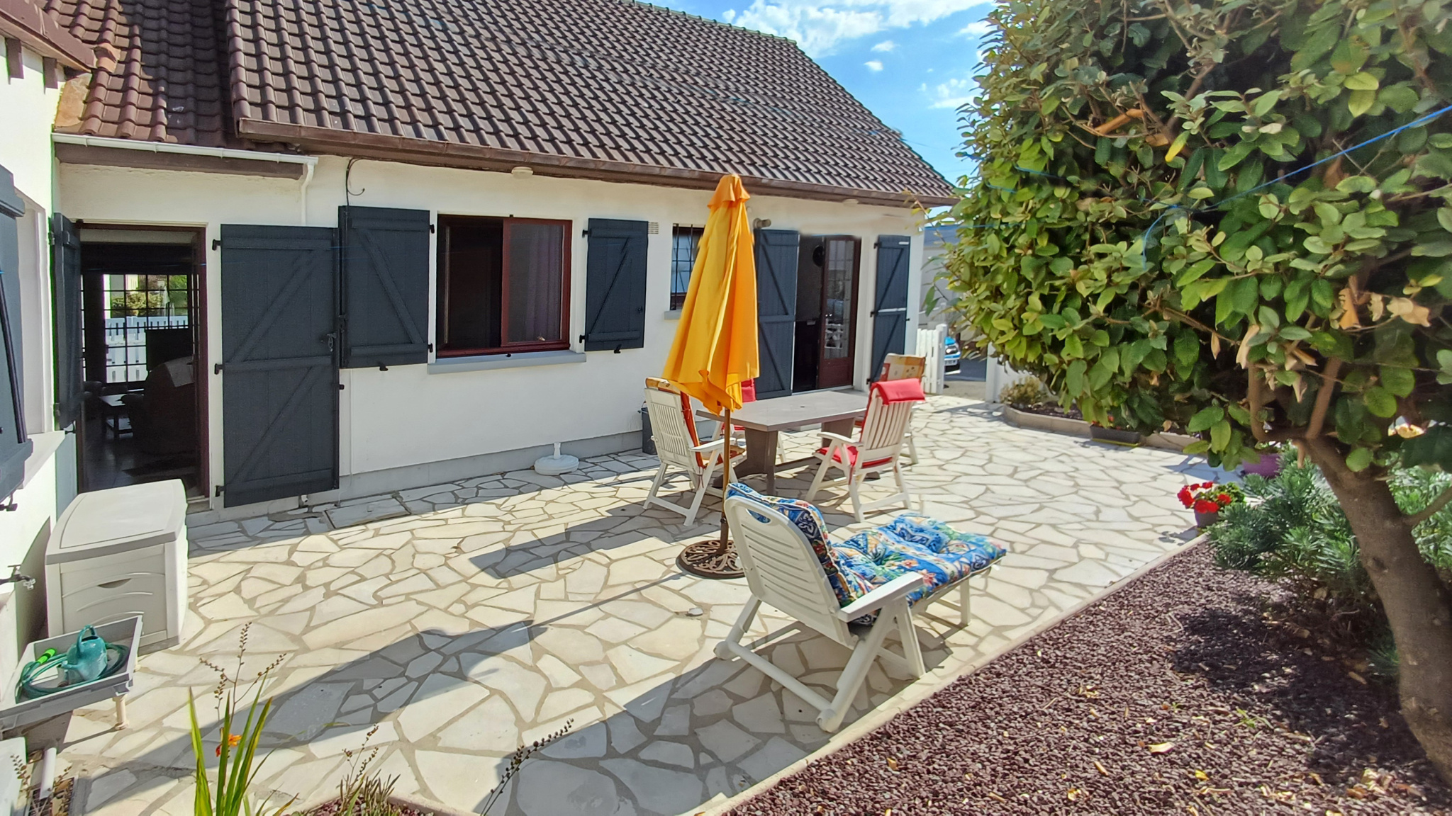 Petit extérieur très bien entretenu : terrasse, atelier : local à vélo.
