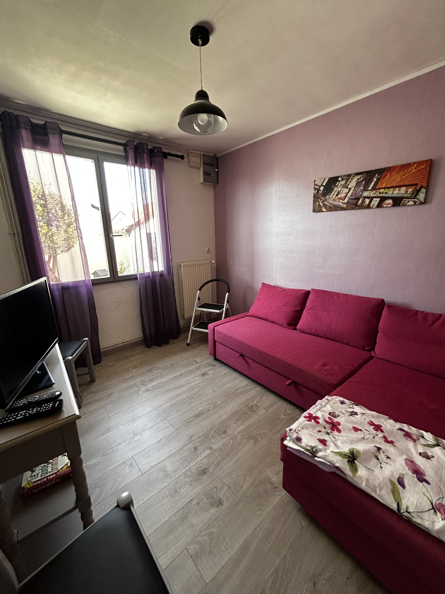 Située dans une rue très peu passante : calme et soleil, belle luminosité.
