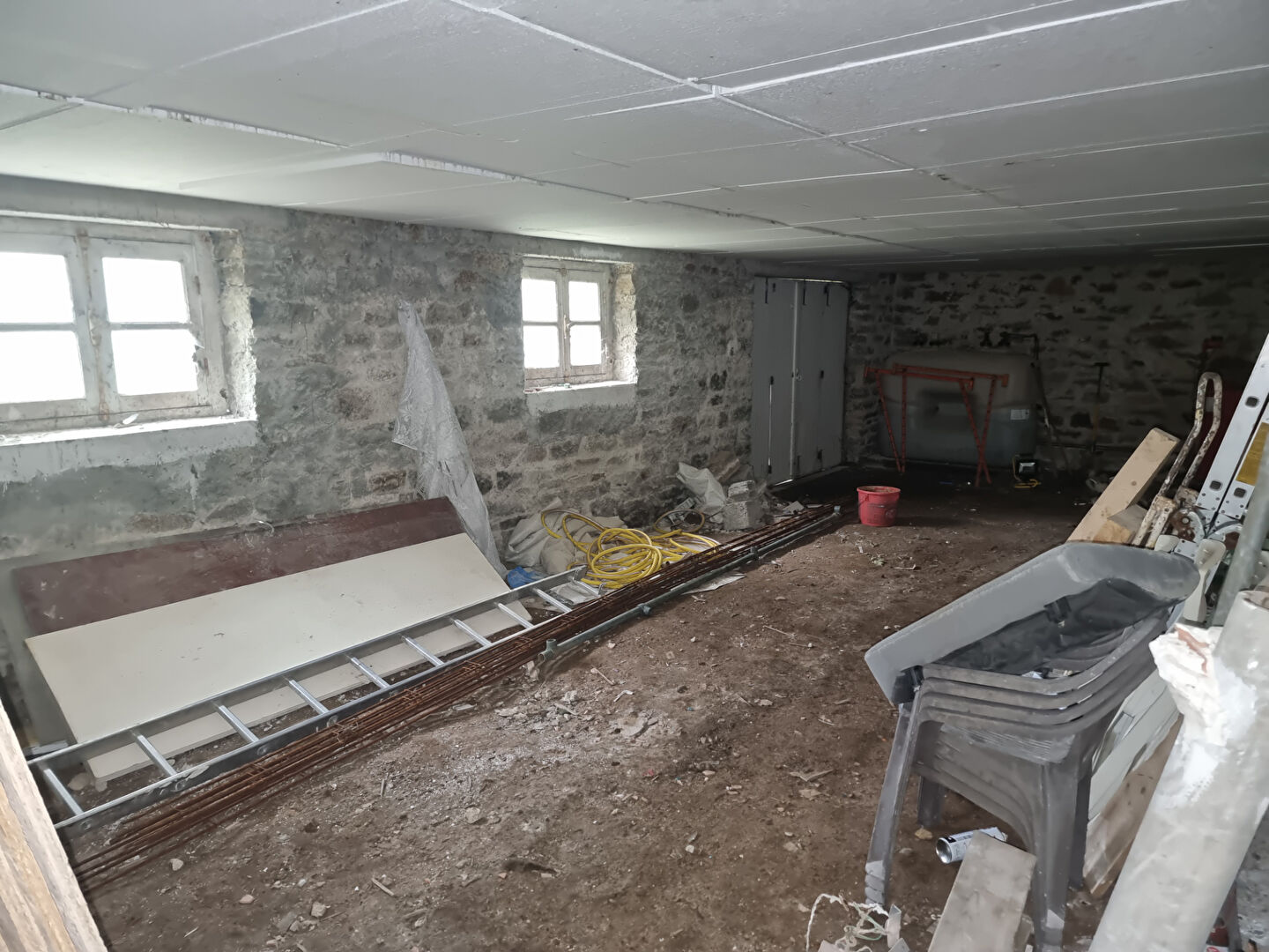 À l'étage, un hall distribue deux chambres, un second WC avec lave-mains, et un grenier.