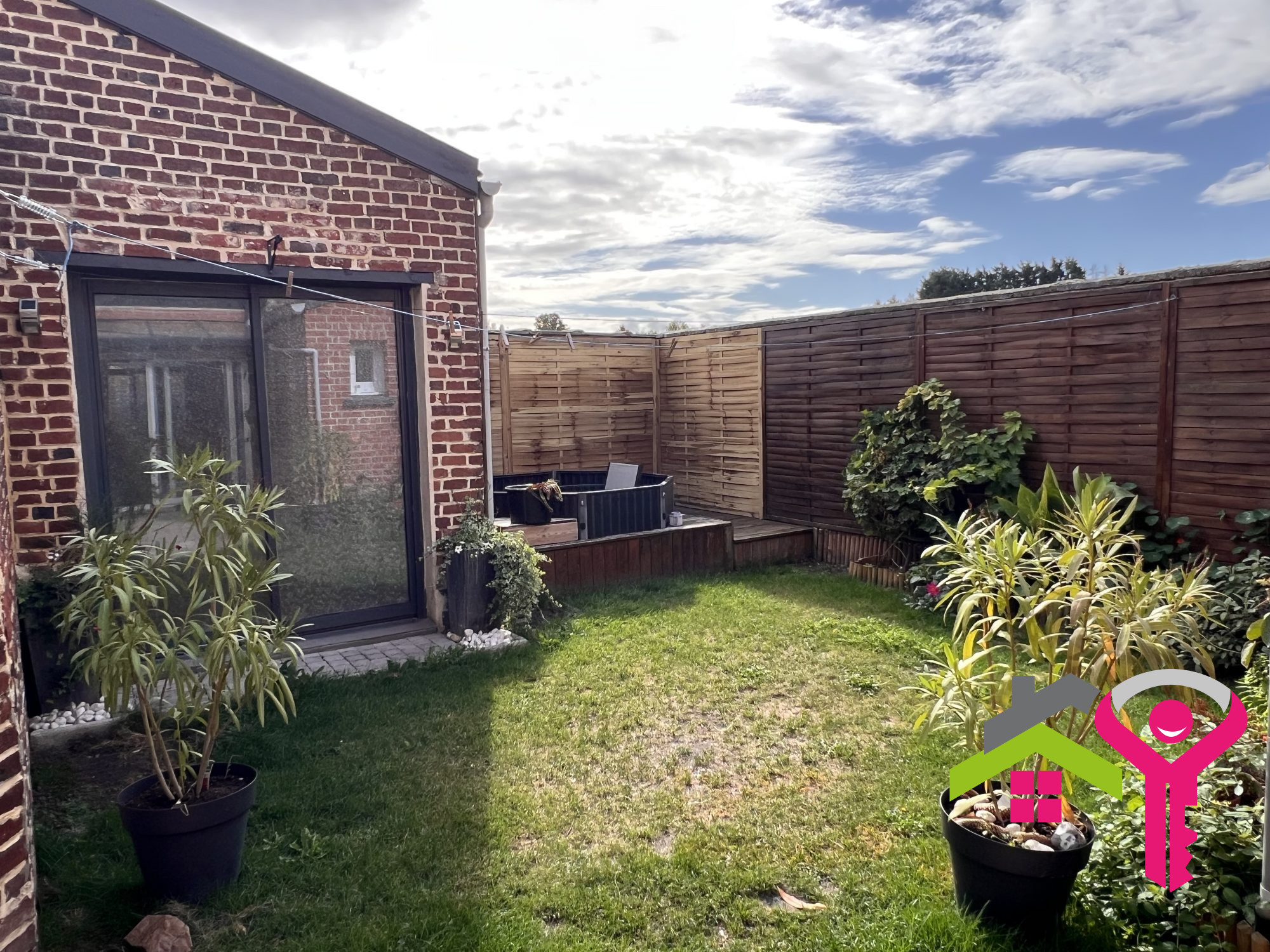 Sur l'arrière, la maison dispose d'une terrasse et d'un jardin clos d'environ 500m².