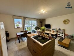 A l'étage, un séjour de 35 m² baigné de lumière naturelle, parfait pour recevoir vos invités ou vous détendre en famille. La cuisine ouverte, équipée avec soin, invite à des moments conviviaux autour de délicieux repas.