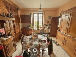 Située dans un environnement calme et résidentiel, à seulement quelques minutes à pied des commerces, des écoles et du centre-ville, venez découvrir cette charmante maison en pierre. Au rez-de-chaussée, l'entrée donnant sur l'escalier en bois vous accueillera. Sur votre gauche, vous pourrez accéder à un salon ainsi qu'à une cuisine indépendante. Sur la droite de l'entrée, profitez de la pièce de vie lumineuse avec parquet ancien et cheminée. Enfin, un WC complète ce niveau. A l'étage, la maison offre deux belles chambres d'environ 14 m² chacune, ainsi que deux pièces supplémentaires pouvant être aménagées en chambres, bureau ou dressing, selon vos besoins. Vous y trouverez également une salle d'eau et des toilettes séparées. Vous disposerez également d'un second escalier permettant d'accéder aux combles isolés, parfaits pour y aménager une pièce supplémentaire. Le bien dispose également d'une cave en sous-sol, d'un grand garage attenant de 35 m² ainsi que de plusieurs petits bâtiments annexes. Côté extérieur, vous profiterez d'un agréable jardin avec un coin terrasse et barbecue exposé plein sud, parfait pour les repas en plein air et les moments de détente. Cette maison offre un cadre de vie agréable et un fort potentiel après quelques travaux de rafraîchissement. Pour plus d'informations ou pour organiser une visite, contactez dès maintenant votre agence FORA IMMOBILIER !