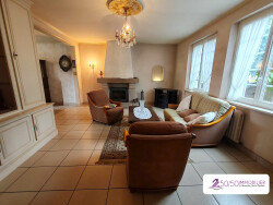 Passant la porte principale, vous trouverez un hall d'entrée. Sur la gauche, nous arrivons sur une cuisine aménagée et équipée puis sur la droite sa pièce de vie lumineuse qui dégage une atmosphère chaleureuse de part sa cheminée. L'exposition Est-ouest permet de profiter de l'ensoleillement toute la journée.