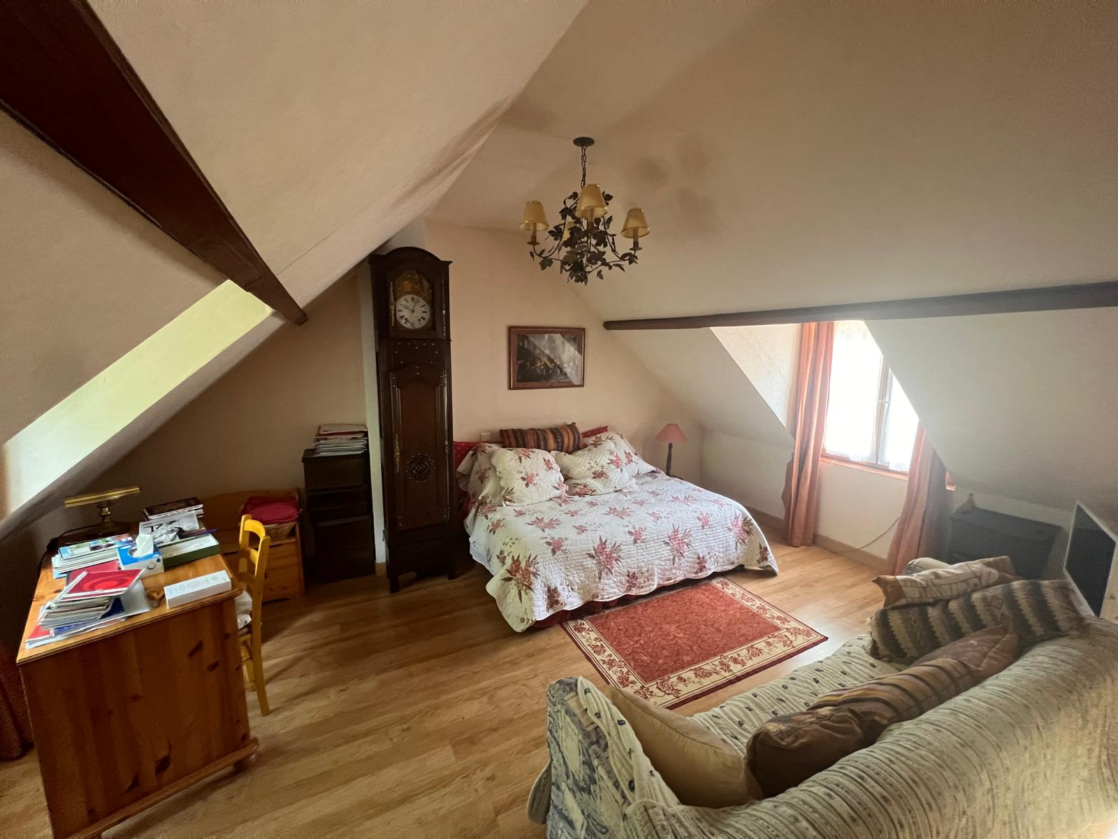 Dans les comble un palier dessert, deux autres chambres et une salle d'eau avec wc.