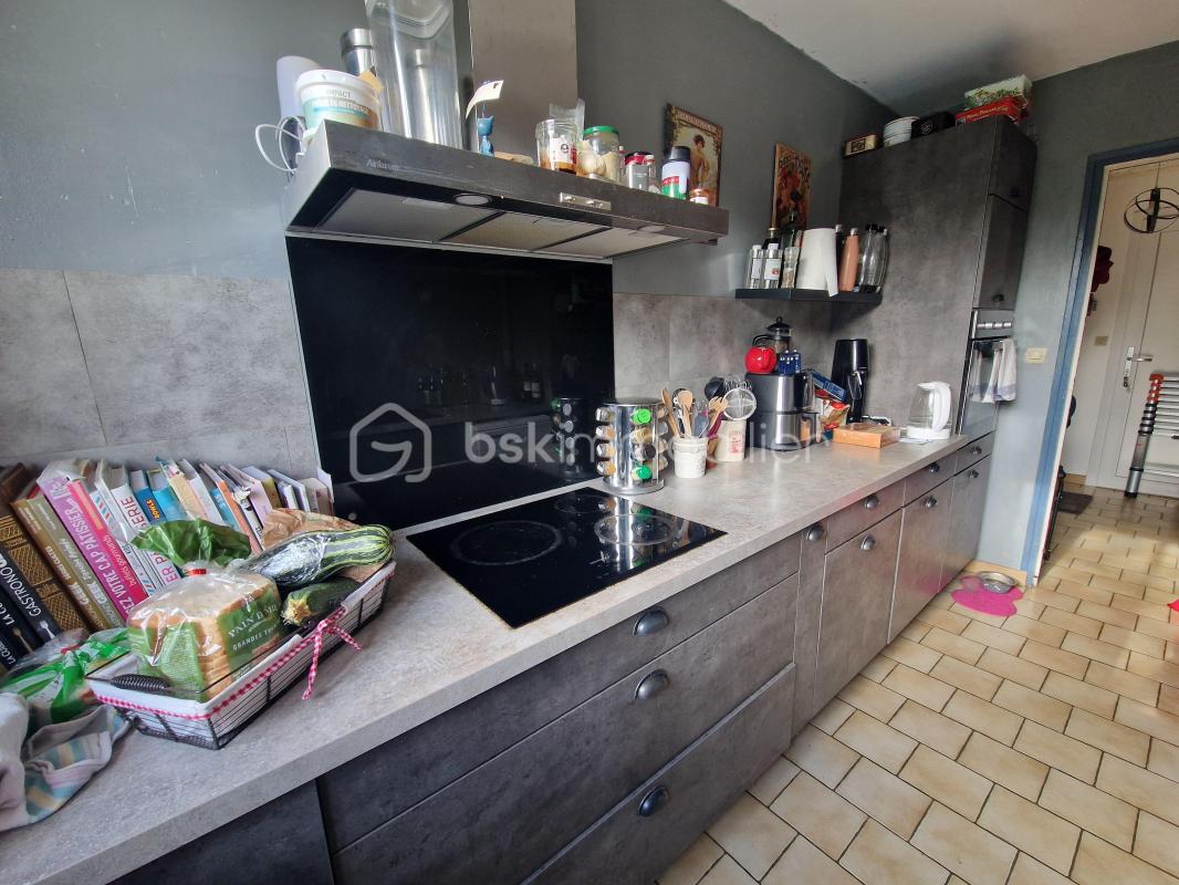 Au rez-de-chaussée une vraie entrée avec rangement, un beau séjour avec poêle à bois, une cuisine lumineuse.