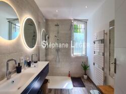 Vous entrerez dans cette bâtisse par un spacieux hall d'entrée. De grandes pièces à vivre lumineuses (cuisine, salon, séjour) donnant sur deux terrasses exposées plein sud vous permettront de profiter d'une vue aérée sur ce magnifique parc aux arbres centenaires. Au rez-de-chaussée, vous trouverez : une chambre, une salle d'eau douche, 2 WC, une buanderie, une remise, un cellier, un accès direct sur le garage de 25m². A l'étage, 2 chambres, une salle de bain belle époque, un WC et un espace bureau ouvert.