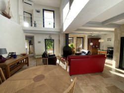 Dans un charmant village à proximité du Pont du Gard, l'agence Sindy Micots Immobilier vous propose une maison en pierre au calme à deux pas du centre. Elle bénéficie d'un ensoleillement optimal de part ses nombreuses ouvertures. En rez de chaussée un vaste espace de vie de près de 50 m2 climatisé avec belle hauteur sous plafond, cuisine équipée. Pour accéder aux espaces nuit , un escalier en pierre, ou un ascenseur dessert les 2 étages superieurs. Une grande chambre avec sa salle d'eau, un espace détente télé et bibliothèque. Au second une chambre avec accès à un solarium, ainsi qu'une pièce de 20 m2 pouvant être une troisième chambre, et une salle d'eau. En prestations complémentaires, un garage pour 4 voitures ainsi qu'un espace atelier . Une piscine chauffée avec plage en bois est complètement à l'abri des regards. materiaux de qualité, climatisation, double vitrage, strore électrique, porte de garage automatique...La cour intimiste offre une terrasse couverte, avec point d'eau et agrémenté d'une belle végétation. contact@micotsimmobilieruzes.com 0675627663 Sindy Micots immobilier uzes