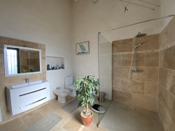 Dans un charmant village à proximité du Pont du Gard, l'agence Sindy Micots Immobilier vous propose une maison en pierre au calme à deux pas du centre. Elle bénéficie d'un ensoleillement optimal de part ses nombreuses ouvertures. En rez de chaussée un vaste espace de vie de près de 50 m2 climatisé avec belle hauteur sous plafond, cuisine équipée. Pour accéder aux espaces nuit , un escalier en pierre, ou un ascenseur dessert les 2 étages superieurs. Une grande chambre avec sa salle d'eau, un espace détente télé et bibliothèque. Au second une chambre avec accès à un solarium, ainsi qu'une pièce de 20 m2 pouvant être une troisième chambre, et une salle d'eau. En prestations complémentaires, un garage pour 4 voitures ainsi qu'un espace atelier . Une piscine chauffée avec plage en bois est complètement à l'abri des regards. materiaux de qualité, climatisation, double vitrage, strore électrique, porte de garage automatique...La cour intimiste offre une terrasse couverte, avec point d'eau et agrémenté d'une belle végétation. contact@micotsimmobilieruzes.com 0675627663 Sindy Micots immobilier uzes