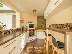 Dès l'entrée, une pièce de vie de plus de 60m² offrant différents espaces distincts : un salon, une cuisine semi-ouverte équipée ainsi qu'une salle à manger, le tout organisé de façon convivial et fonctionnel. Ces espaces donnent accès au jardin de 80m2, sans vis-à-vis, parfait pour profiter des beaux jours. Un espace bureau, un WC, une buanderie, des rangements ainsi qu'un garage de plus de 25m2 viennent compléter ce niveau.