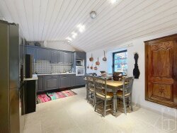 Perchée sur les hauteurs du célèbre Rocher de Sampzon, cette authentique maison en pierre offre un panorama exceptionnel qui ne manquera pas de vous séduire dès les premiers instants. Dominant le paysage, elle bénéficie d'un cadre naturel privilégié où chaque regard se perd dans la beauté environnante. Depuis la terrasse en surplomb jusqu'à la piscine, en passant par la lumineuse salle à manger vitrée où la convivialité s'invite naturellement, chaque espace a été pensé pour profiter pleinement de la vue et de la douceur de vivre. La maison dispose de cinq chambres, dont une suite parentale, offrant confort et intimité à toute la famille. Implantée sur un vaste terrain de plus de 7 237 m², joliment agrémenté de magnifiques oliviers, la propriété offre un cadre paisible et authentique, propice à la contemplation et à la détente au fil des saisons. Ici, chaque moment devient une invitation à savourer les belles journées ensoleillées, à se reconnecter à la nature et à se ressourcer loin de l'agitation. En complément, une dépendance indépendante permet d'accueillir des amis de passage ou d'envisager une activité de location saisonnière, offrant ainsi un réel potentiel supplémentaire. Idéalement située entre Ruoms et Vallon-Pont-d'Arc, cette maison de charme, à l'emplacement rare, conjugue calme, proximité des commodités et fort potentiel. Un lieu unique, prêt à donner vie à tous vos projets.