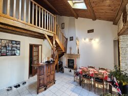 Saint Hilaire la Palud, en plein coeur du Marais Poitevin en bordure de rivière, jolie maison en pierre d'environ 130 m² hab., comprenant au rez-de-chaussée : une entrée, un séjour-salle à manger sous plafond cathédrale avec cheminée insert, un salon avec baie vitrée donnant sur terrasse, une cuisine aménagée et équipée, une suite parentale avec placard, salle d'eau avec wc et une pièce bureau ou dressing, une buanderie, une pièce de stockage avec baie vitrée. A l'étage : une mezzanine/ bureau/ bibliothèque ou espace jeux, un couloir desservant 2 chambres, une salle d'eau avec wc. A l'extérieur : deux terrasses et un bâtiment indépendant composé de 2 garages, une cave et une remise. L'ensemble sur un terrain de 3298 m².