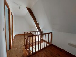 Hudimesnil en campagne dans un hameau. Maison mitoyenne en pierre, comprenant au rez de chaussée une pièce de vie avec une cheminée foyer ouvert, une cuisine aménagée et une pièce. A l'étage, deux chambres, une salle de bains et un wc. Au 2nd étage, un couloir avec une mezzanine desservant deux chambres.
