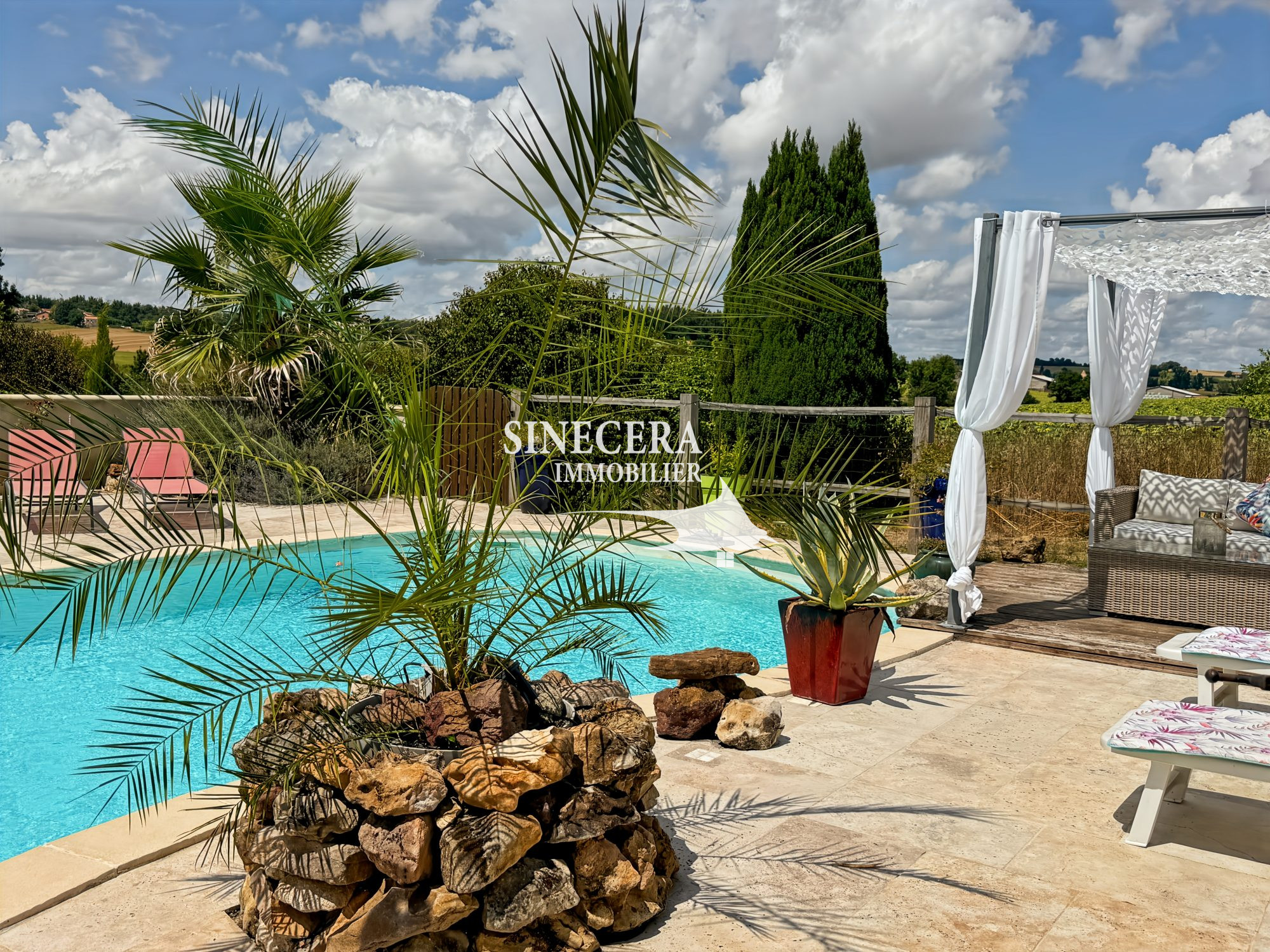 Espace extérieur : Terrasse ombragée, superbe piscine 5x10m, pool house et jardin soigné, idéal pour vos moments de détente en famille.