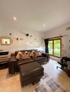 Au rez-de-chaussée, vous trouverez une grande pièce à vivre composée du salon, de la cuisine, ainsi qu'une chambre avec sa salle de bain privative en marbre. L'étage se compose de quatre chambres lumineuses, une mezzanine aménagée en espace salon, deux salles de bain et un WC.
